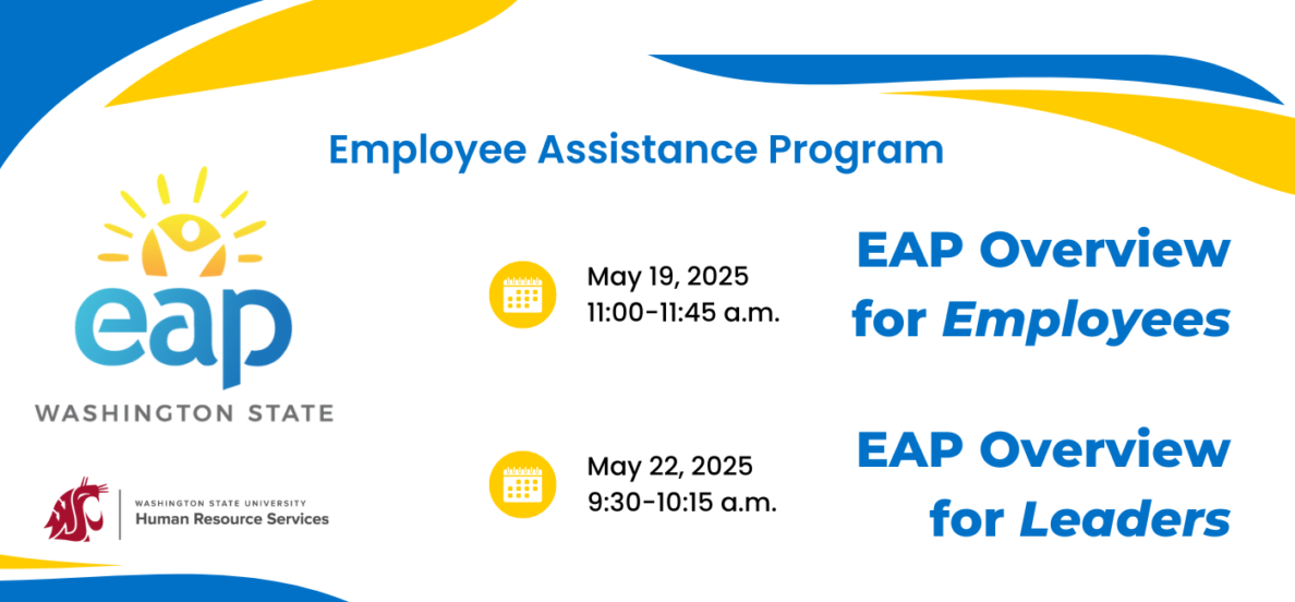 Whether you’re navigating personal challenges, supporting team members through tough times, or simply looking to learn more about available resources, Washington State Employee Assistance Program (EAP) workshops offer helpful guidance for both employees and leaders. Register for one or both of these upcoming sessions providing tailored overviews to help you make the most of these confidential, no-cost services—no matter your role.