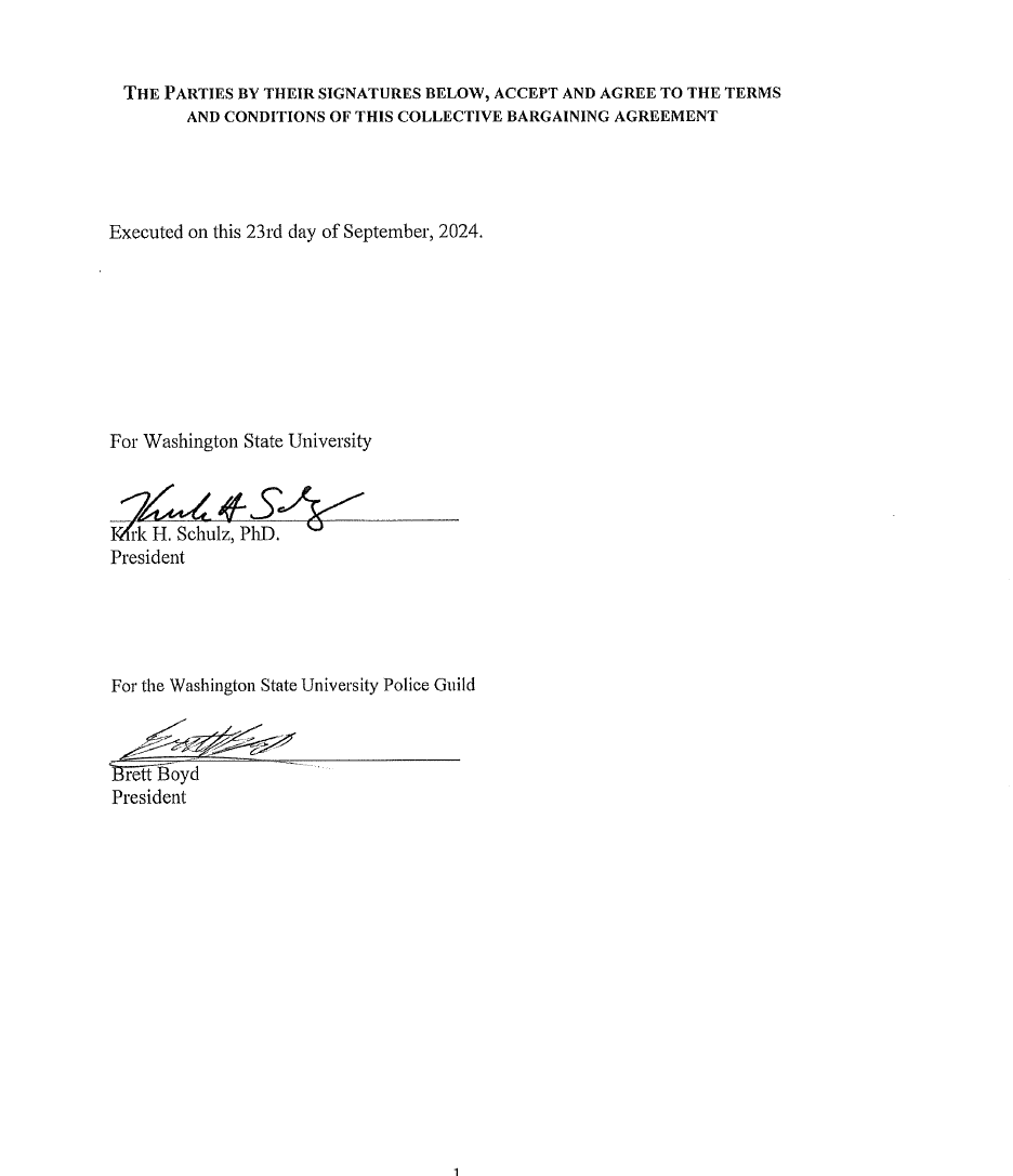 This constitutes an agreement between the Board of Regents of Washington State University, hereinafter referred to as the UNIVERSITY or EMPLOYER, and the Washington State University Police Guild, hereinafter referred to as the GUILD.
